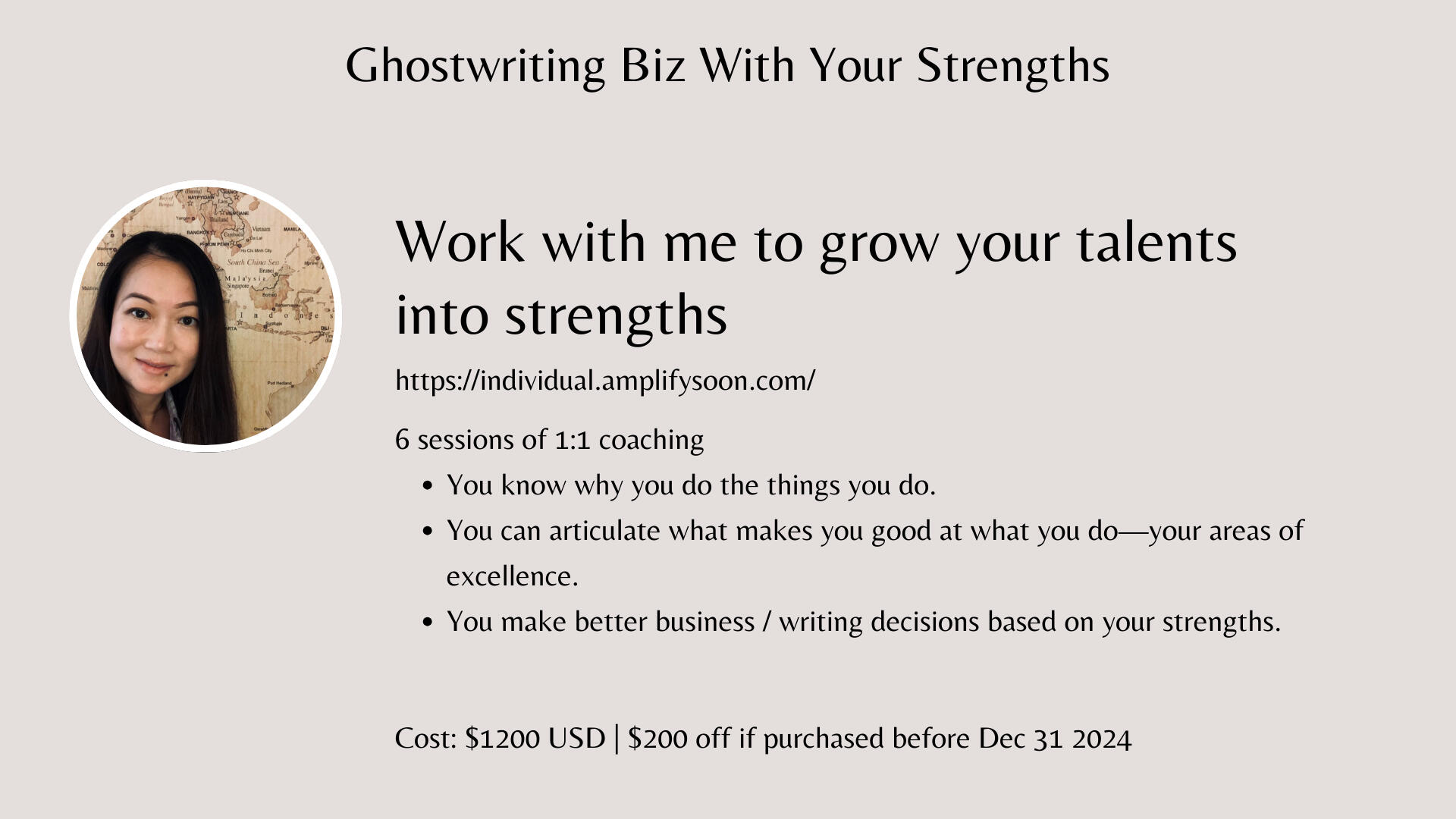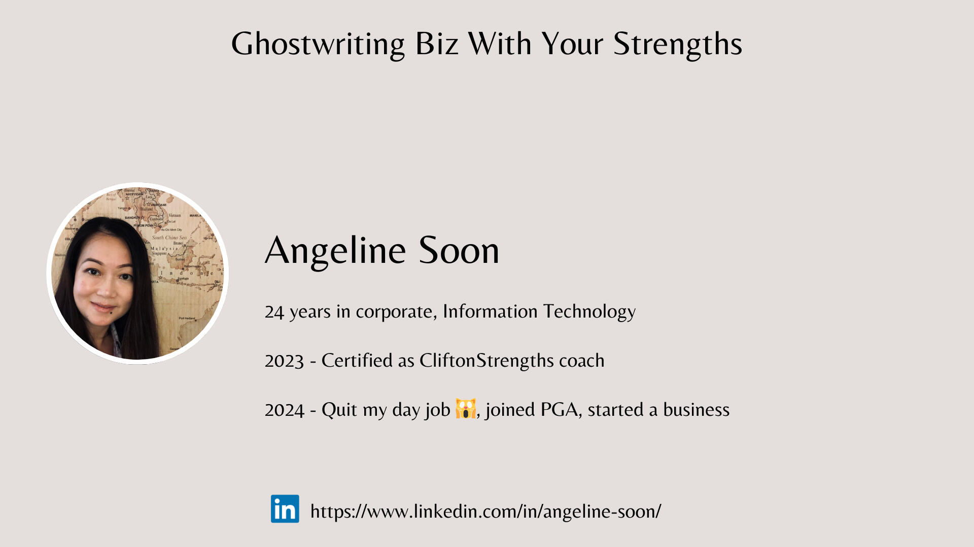 Hello! 👩🏽 I’m Angeline Soon. After 23 years in corporate, I decided to exit that path, and founded Amplify Soon Coaching and Consulting in 2023.My services combine my diverse career experiences in e-learning, project management, IT consulting, and my passion for writing.I help CliftonStrengths coaches transform their ideas into educational content that attracts and converts their ideal clients. As a Gallup-certified Strengths coach, I’m also on a personal mission to empower the next generation to embrace and leverage their strengths for success.